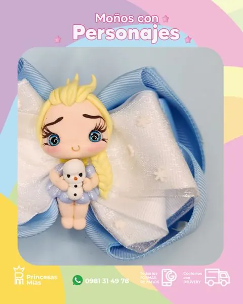 Moño Princesita de Nieve ❄️🩵✨ un lazo soñado en tonos celestes y blanco, con detalles que parecen copitos de nieve y una muñequita tiernísima abrazando a su amiguito de nieve ☃️💙 Perfecto para looks de invierno, sesiones de fotos y momentos donde la dulzura brilla más fuerte 🌨️🎀 Accesorios infantiles hechos a mano con amor, delicadeza y encanto. 💖 ¡Cada lazo lleva cuidado, calidad y un toque especial que transforma cada momento en magia! 🎀