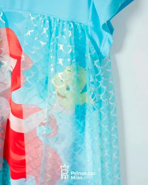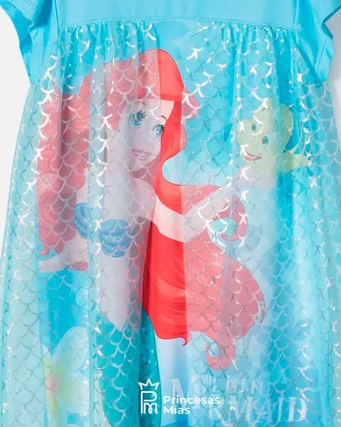¡Que los sueños más mágicos cobren vida! Esta pijama con el encanto de Ariel transforma cada noche en una aventura submarina llena de fantasía. Su diseño de batola con estampado de tacto suave hace que tu pequeña se sienta como una verdadera princesa del mar, mientras que su composición en poliéster con elastano garantiza la comodidad perfecta para noches de descanso reparador. - Color: Azul con estampado de Ariel y escamas brillantes - Silueta: Batola con falda amplia y manga corta - Fit: Regular fit cómodo para libertad de movimiento - Estampado: Tacto suave con detalles brillantes que no se desgastan - Diseño: Torso liso con falda estampada allover de escamas de sirena. 97% poliéster 7% Elastano