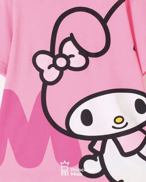 Cuando los estilos más tiernos se unen con los más cómodos y prácticos, ¡el resultado es esta camiseta! Su diseño permitirá que tu pequeña se mueva libremente y con confianza, mientras que el toque especial de My Melody & Kuromi le dará la seguridad que necesita para seguir siendo la niña más cool y divertida en cualquier ocasión. ¿Lista para ver cómo tu hija es la que más brilla? Diseño:Camiseta de manga corta y cuello redondo en rib elástico que facilita el paso de la cabeza. Confeccionada en algodón para mayor frescura, suavidad y comodidad. Además, lleva un estampada en el frente con apliques de mirella. Composicion 99% Algodón 1% Elastano