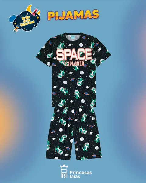 ¡Claro! Te dejo las descripciones listas para copiar y pegar en tu web (una por cada modelo que me mostraste). 1) Pijama niño “Space Explorer” – Gris (dino astronauta) ✨ Descripción corta: Set de 2 piezas ideal para noches y vacaciones, con estampa espacial súper divertida que brilla en la oscuridad. Descripción para la web: Pijama infantil de 2 piezas con remera manga corta color gris melange y estampa de dino astronauta “Space Explorer”. Short con cintura elástica y diseño espacial (planetas/astronautas). Súper cómodo, liviano y perfecto para dormir fresquito o jugar en casa. Detalles: 2 piezas: remera + short Estampa temática espacial Brilla en la oscuridad Cintura elástica para mejor ajuste Cuidados: Lavar del revés, con agua fría. No usar cloro. No planchar sobre la estampa.